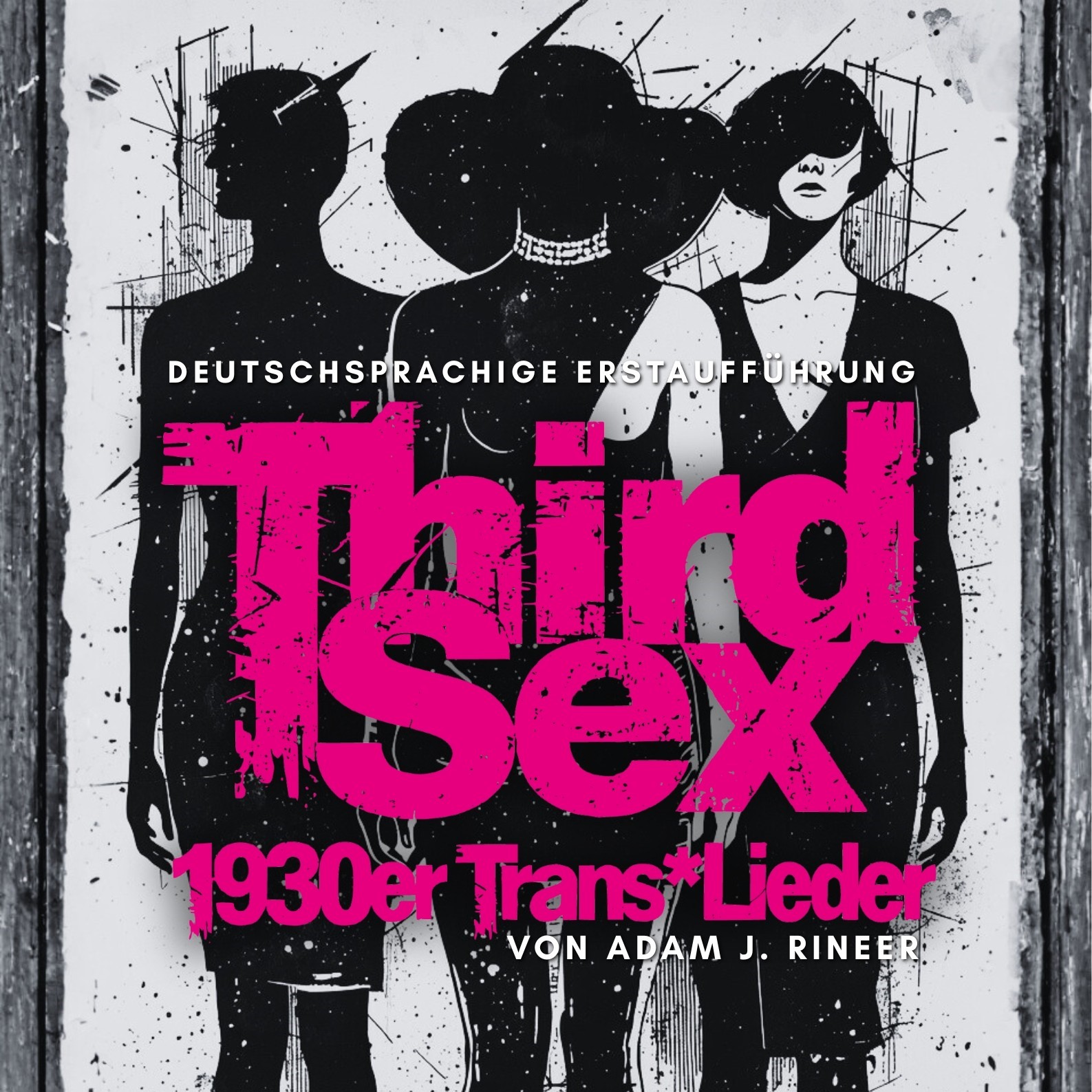 Der junge amerikanische Komponist Adam J. Rineer hat dazu Texte aus dem deutschen Magazin «Das 3. Geschlecht» aus den frühen 1930er Jahren, in dem es vorrangig um Trans*Personen ging, übersetzen lassen und mit viel Kreativität vertont. Bei uns kommt dieses musikalische Gesamtwerk, ein Punk-Musical-Songzyklus, erstmals mit den deutschen (Original-) Texten zur Aufführung. Die Überarbeitung dieser Texte für die deutsche Fassung stammt von AMY und dem Schweizer Musicalstar Patric Scott, der auch für Regie und Einrichtung auf der Bühne sorgt sowie selbst bei der Première anwesend sein wird.